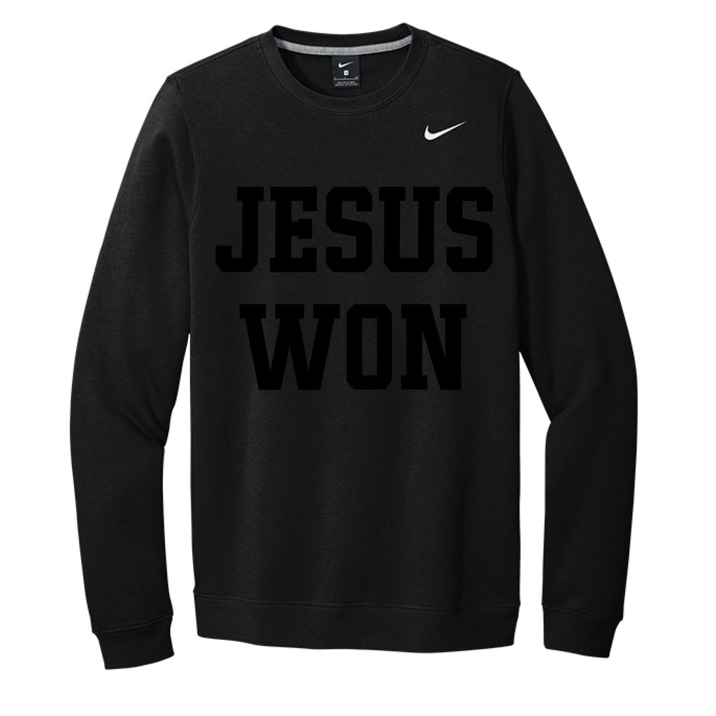 Christian crewneck, “Jesus Won” sweatshirt, faith-based Nike apparel, Christian lifestyle clothing, Nike Golf fleece, Christian streetwear, inspirational crewneck, Christian fashion for men and women, modern faith apparel, Jesus victory sweatshirt