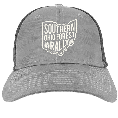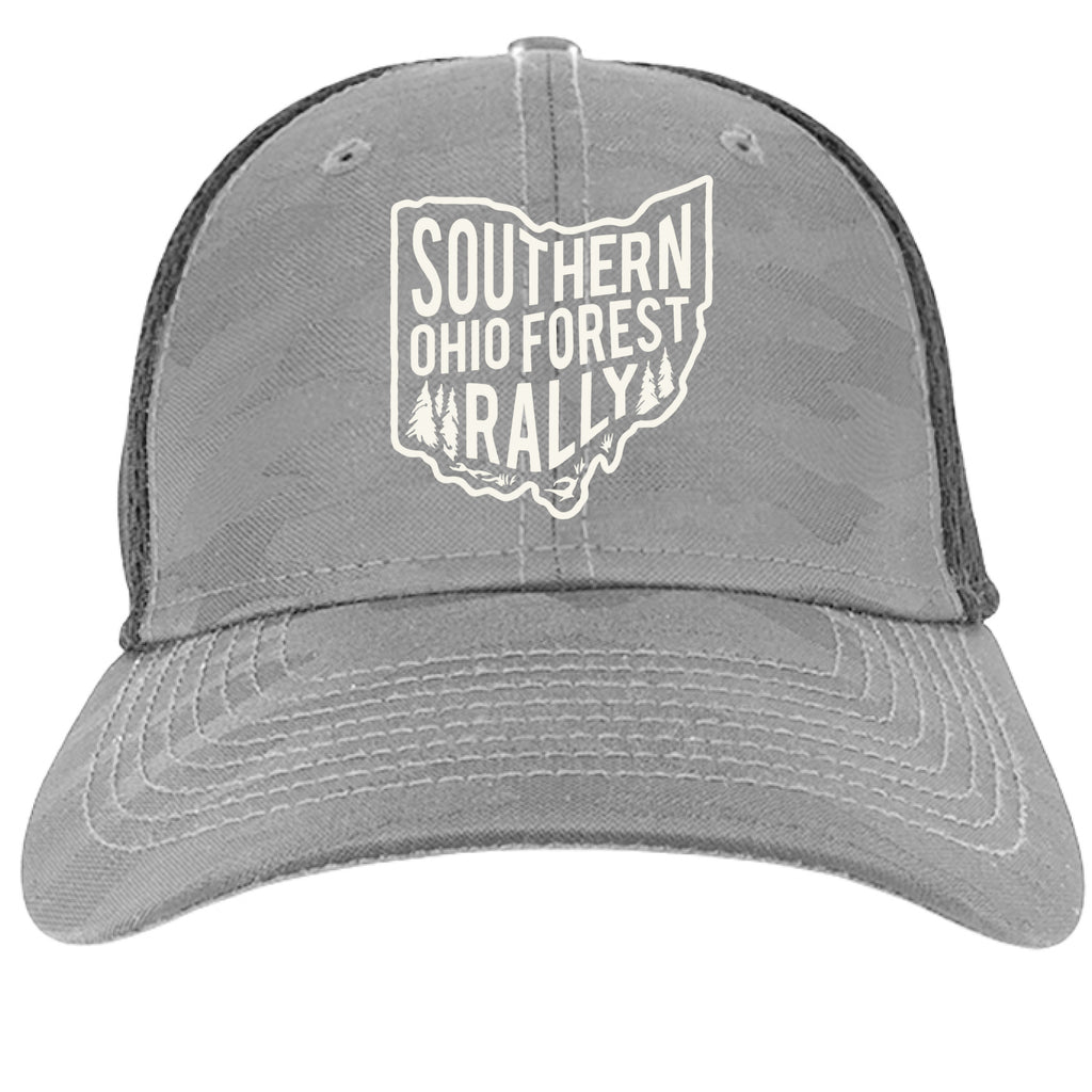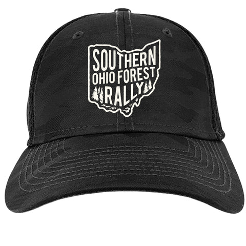 Keywords: Southern Ohio Forest Rally hat, SOFR hat, New Era camo hat, rally racing cap, Ohio rally gear, motorsport apparel, stretch fit hat, tonal camo cap, breathable mesh hat.